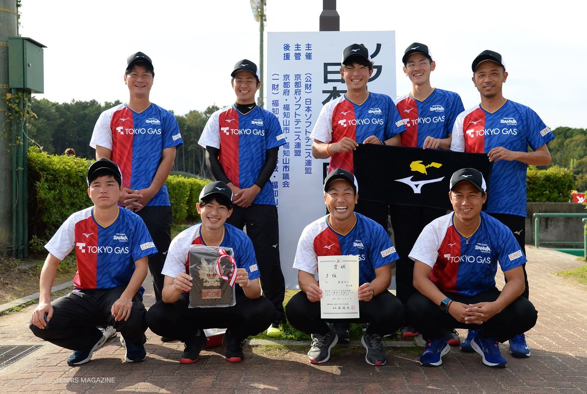 3位の東京ガス。ナショナルチームのエース・安藤優作がシングルスを担った。同じくナショナルチームのルーキー・松本倫旺は早稲田大の先輩・髙橋拓未とのペアで全勝