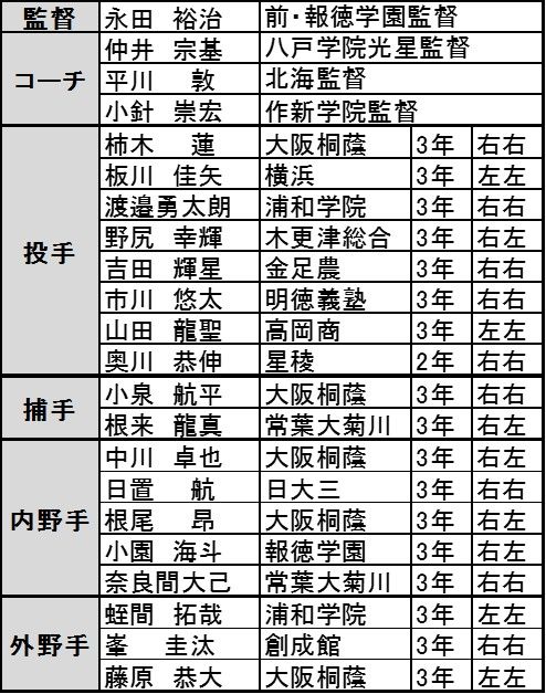 U-18代表メンバー