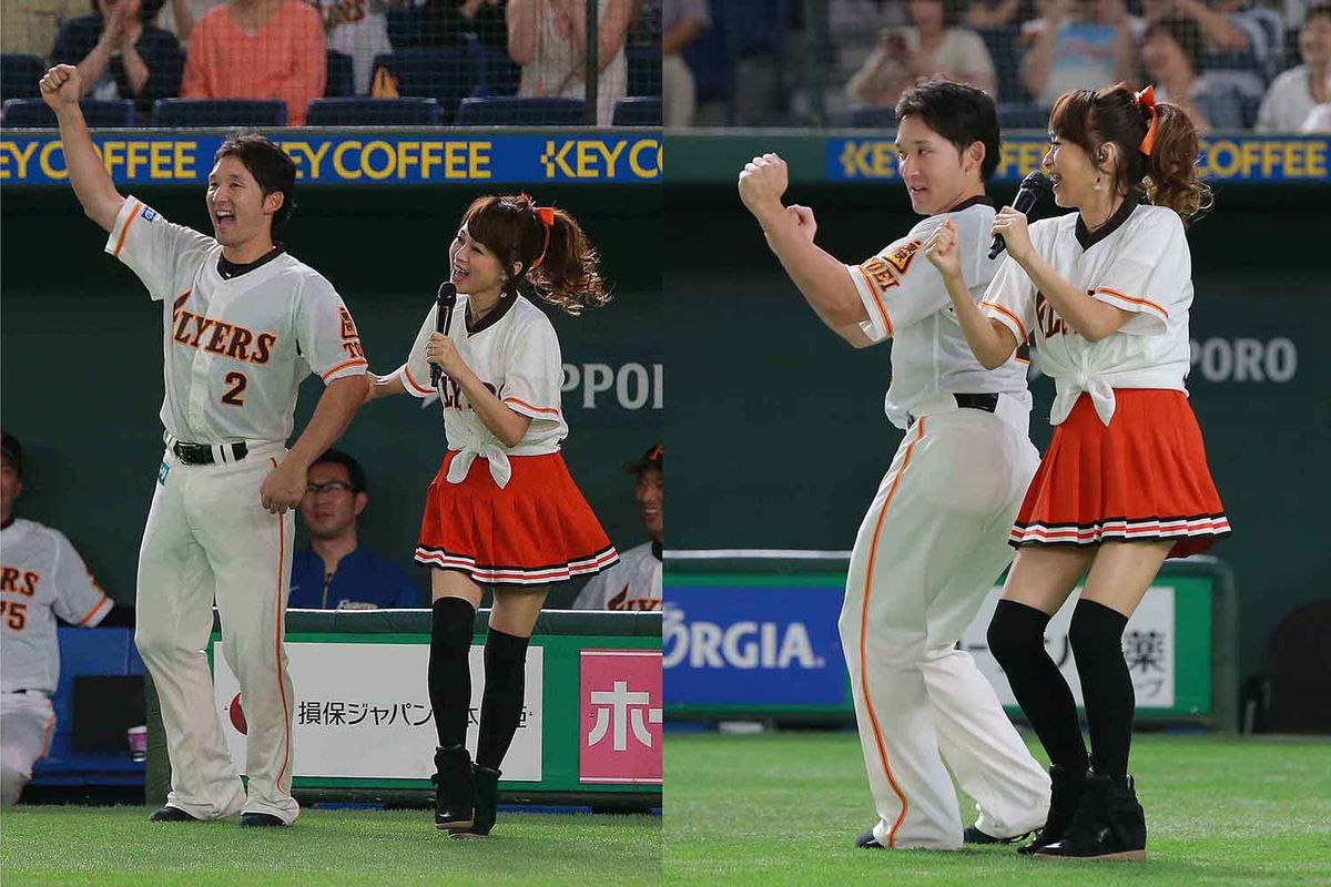2007年7月の東京ドーム。試合前に「レジェンドシリーズ2017」のゲストで登場した渡辺美奈代とアドリブで共演を果たし球場を沸かせた。
