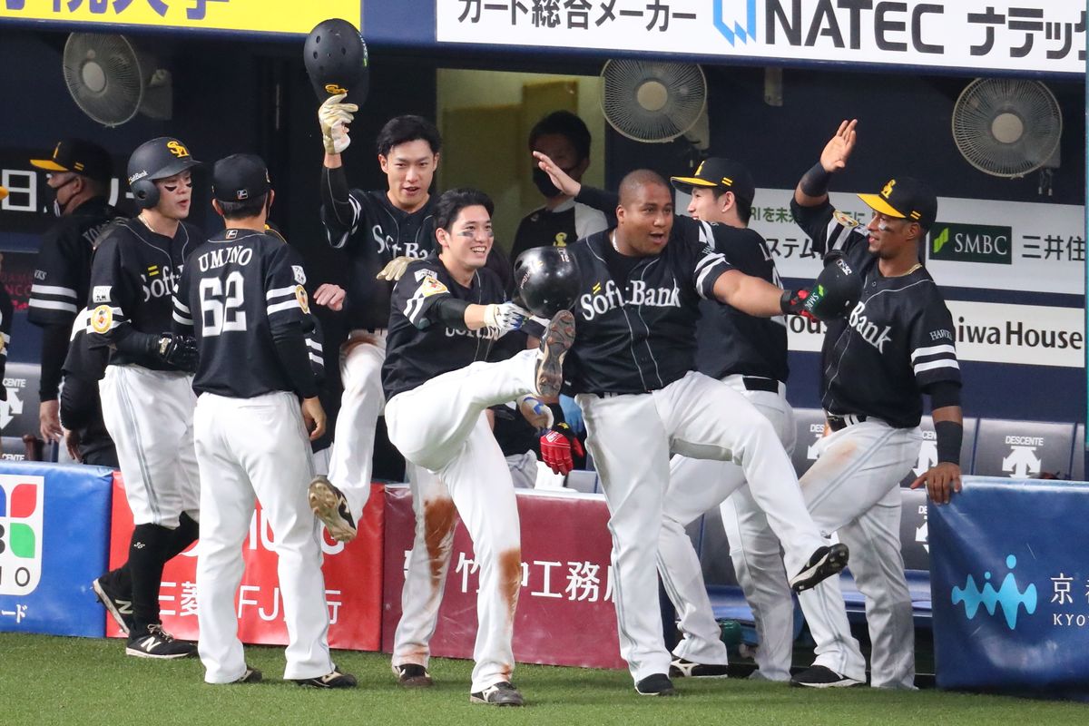 日本シリーズ第2戦。7回表デスパイネ選手の満塁ホームラン後ベンチ前でのシーン。楽しそうです。このシリーズを決定づける一打でした。