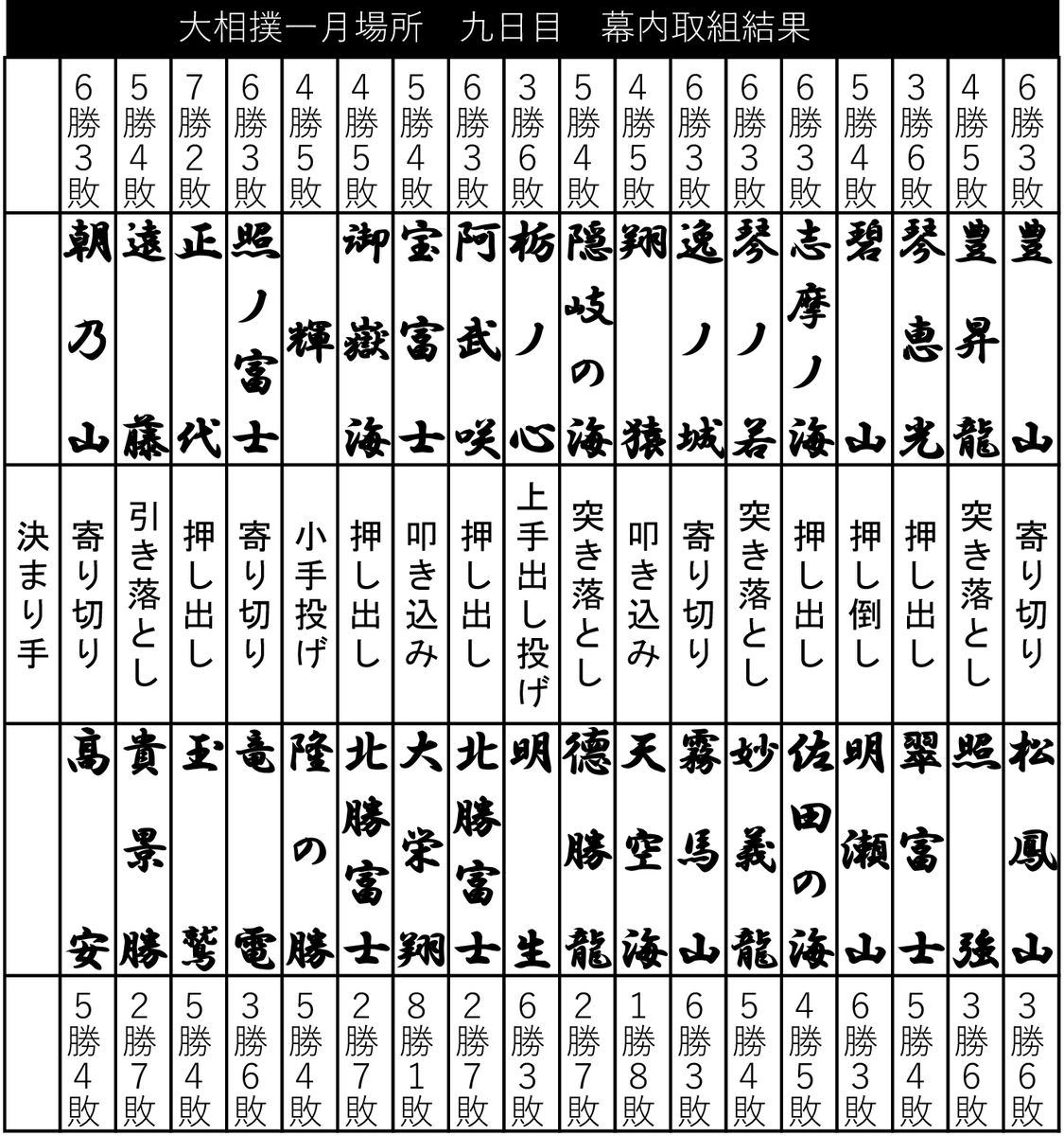 大相撲初場所9日目 幕内取組結果