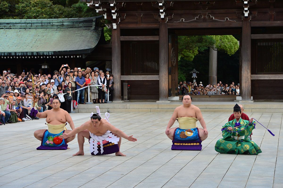 新横綱日馬富士が明治神宮奉納土俵入り披露。