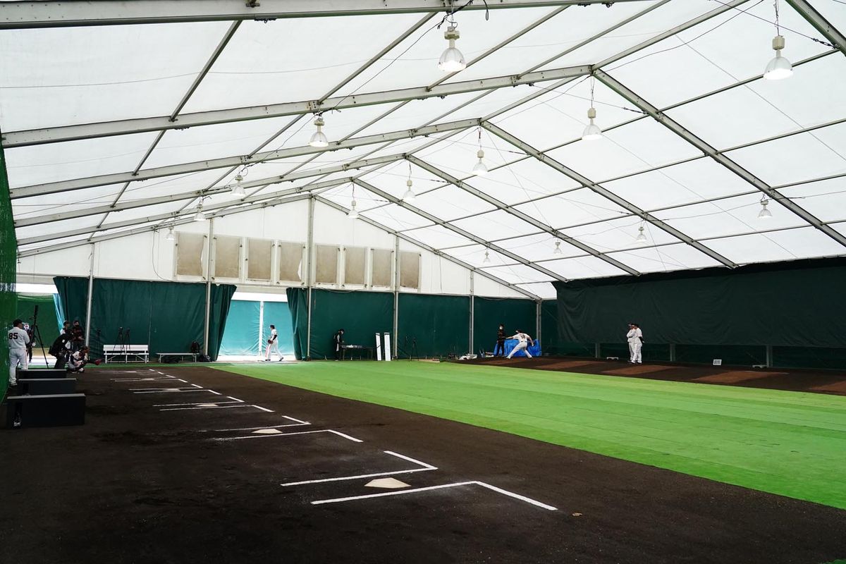 チームキャプテンの坂本勇人もロングティーを打ちまくっています。6日からの沖縄キャンプで良い感じに真っ黒に日焼けしていますが、反面我々報道陣はマスクで変な日焼けにならないように気を付けなければなりません。