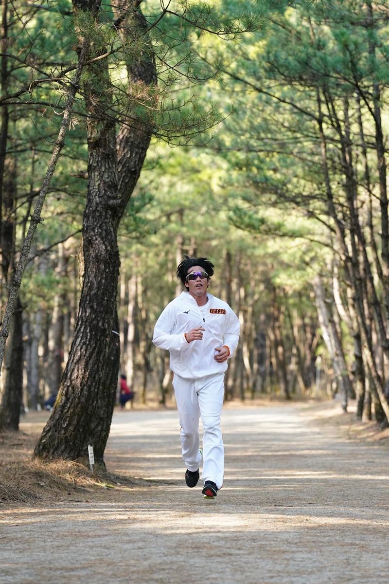 今キャンプ第1クールの最後は、おなじみの公園内林間コースランニング。この宮崎キャンプメンバーの中ではベテラン?の、重信慎之介も快走しています。