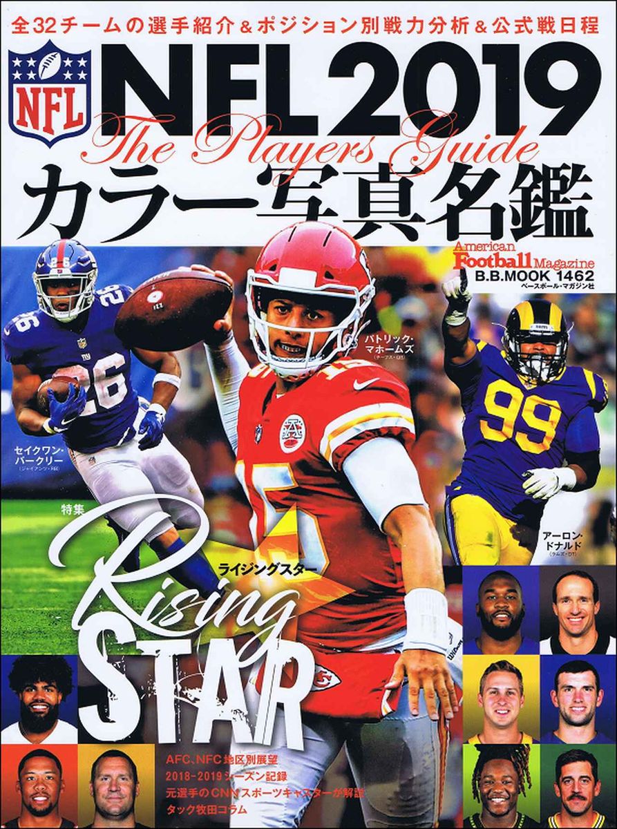 8月29日(木)発売に発売される『NFL2019カラー写真名鑑』(ベースボール・マガジン社)では、NFLを席巻する期待のゴールデンボーイたち「RISING STAR」を大特集する。