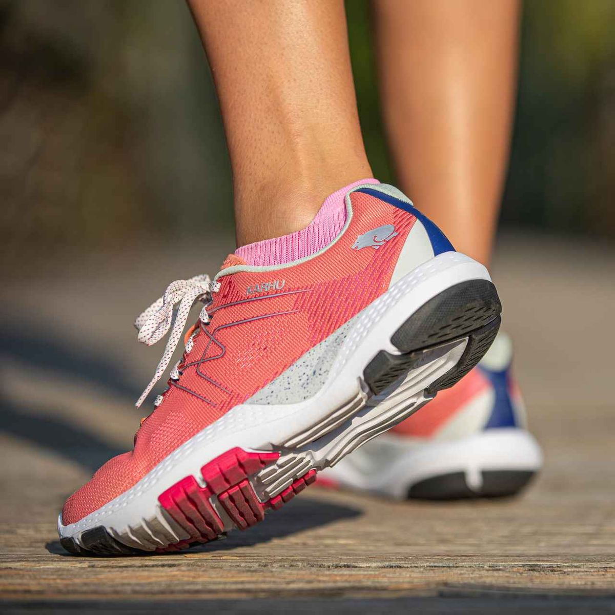 カルフのアイコンであるIKONI ORTIX(イコニオルティックス)の2020年Spring Summer Collectionは、オリジナルテクノロジー「フルクラム」による無駄な上下運動のエネルギーを推進力に変換する特徴はそのままに、新しいニットアッパーによってサポート性とストレッチ性を向上させている。