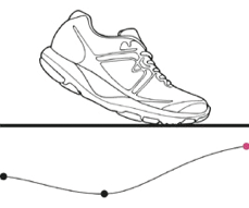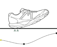 逆三角形のフルクラムが支点となり、かかとや中足部の接地点から前方へとスムーズな体重移動を促す