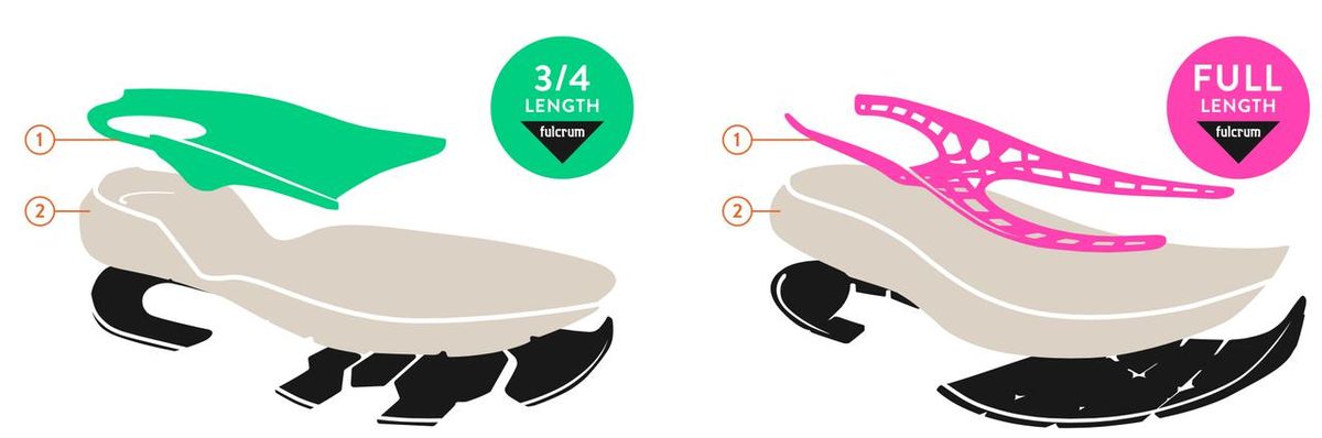固い逆三角形の頂点が支点の役割を担い、前足部が力点となり、踵が作用点となって浮き上がる。シンプルだが、フルクラムテクノロジーが推進力を生むメカニズムである。