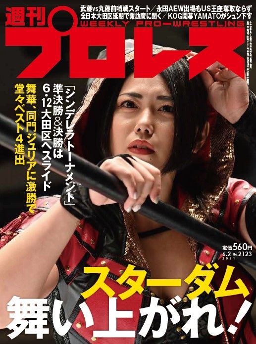 今週号の掲載内容は…スターダム「シンデレラトーナメント」準決勝&決勝は6・12大田区へスライド。舞華、同門ジュリアに激勝で堂々ベスト4進出/武藤敬司vs丸藤正道前哨戦スタート/永田裕志AEW出場もUS王座奪取ならず/全日本大田区延期で諏訪魔に聞く/DRAGONGATE「KOG」開幕、YAMATOがシュン・スカイウォーカー下す、ほか。