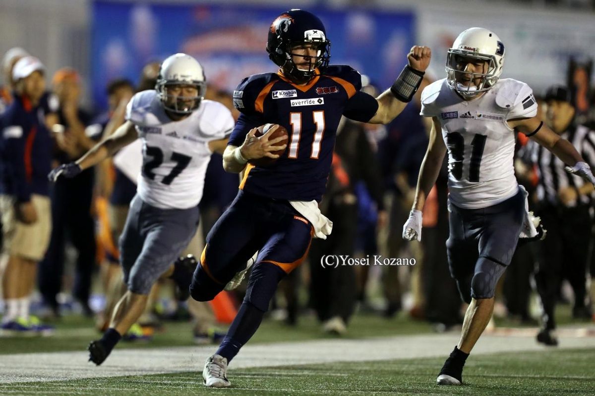 【ノジマ相模原 vs 明治安田】第3クオーター、ノジマ相模原QBロックレイが54ヤードを走ってTD=富士通スタジアム川崎で2019年4月21日 撮影 小座野容斉
