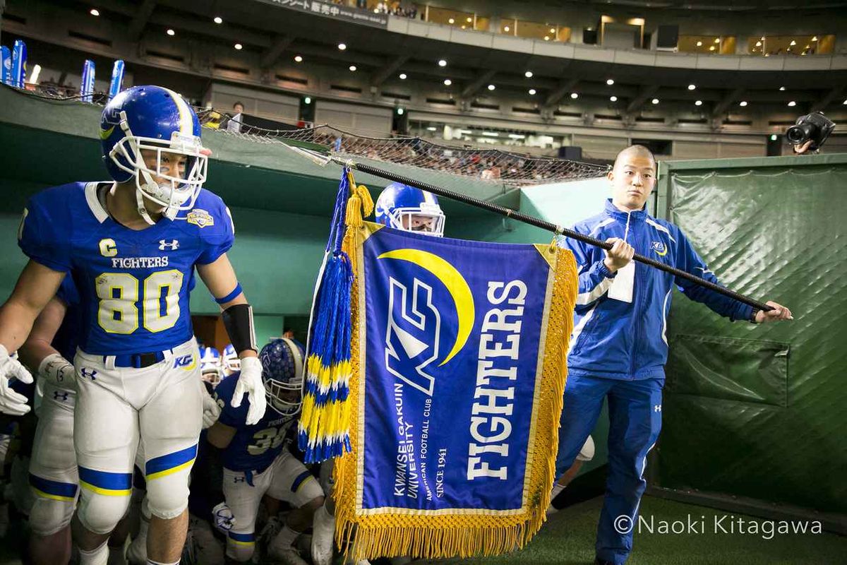 アメリカンフットボールの日本選手権、ライスボウルは、52-17で社会人王者の富士通が勝利した。厳しい試合結果の一方で、学生王者の関学を支えたストーリーを耳にした。それは、選手入場時に使われる、部旗にまつわるものだ。