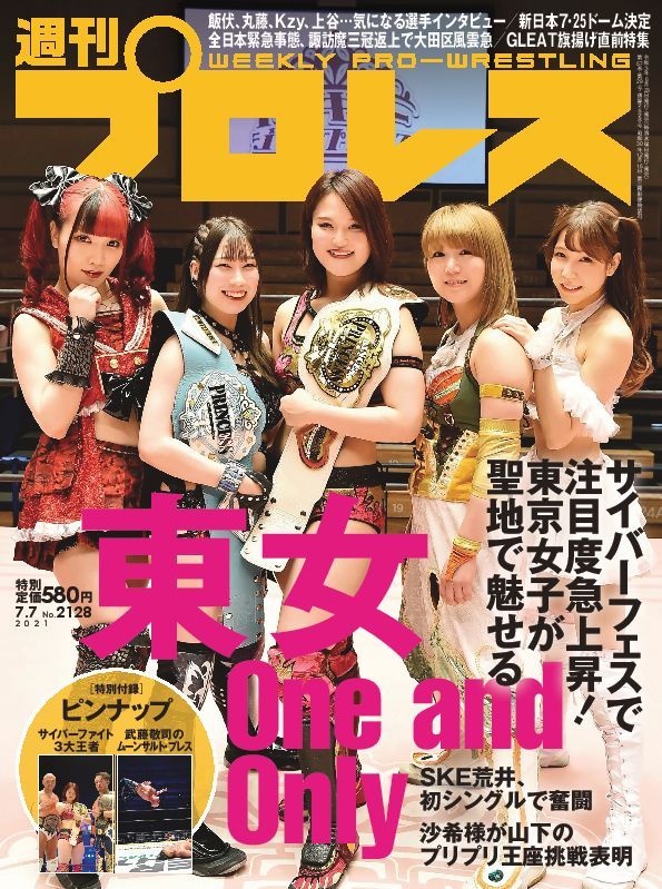 今週号の掲載内容は…サイバーフェスで注目度急上昇!東京女子が聖地で魅せる。SKE荒井優希、初シングルで奮闘。沙希様が山下実優のプリプリ王座挑戦表明/飯伏幸太、丸藤正道、Kzy、上谷沙弥…気になる選手インタビュー/新日本7・25ドーム決定/全日本緊急事態、諏訪魔三冠返上で大田区風雲急/GLEAT旗揚げ直前特集、ほか。