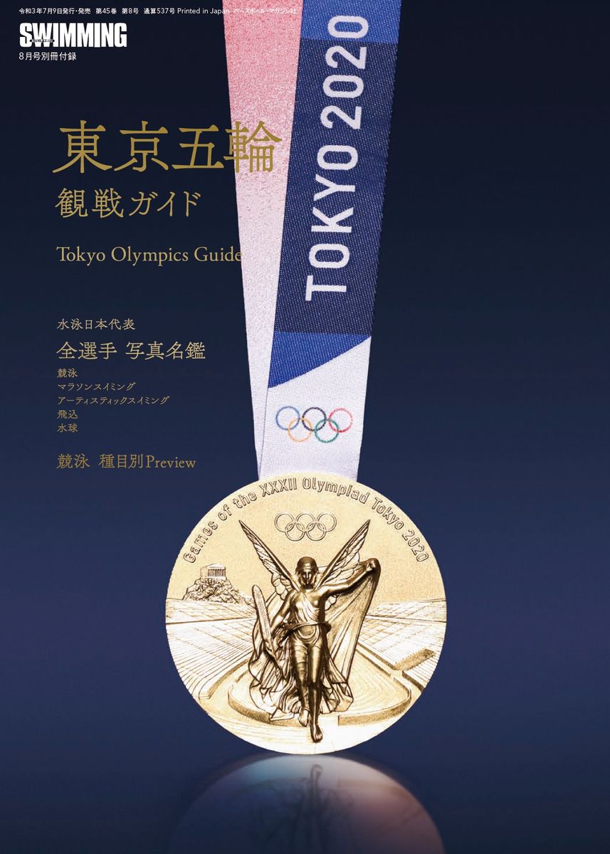 スイミング・マガジン8月号はいつもより少し早く、本日9日発売となりました。今月号は東京五輪展望号です。別冊付録で東京五輪観戦ガイド付きです。