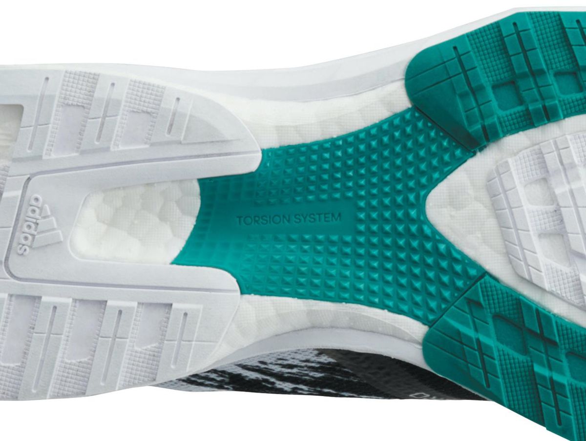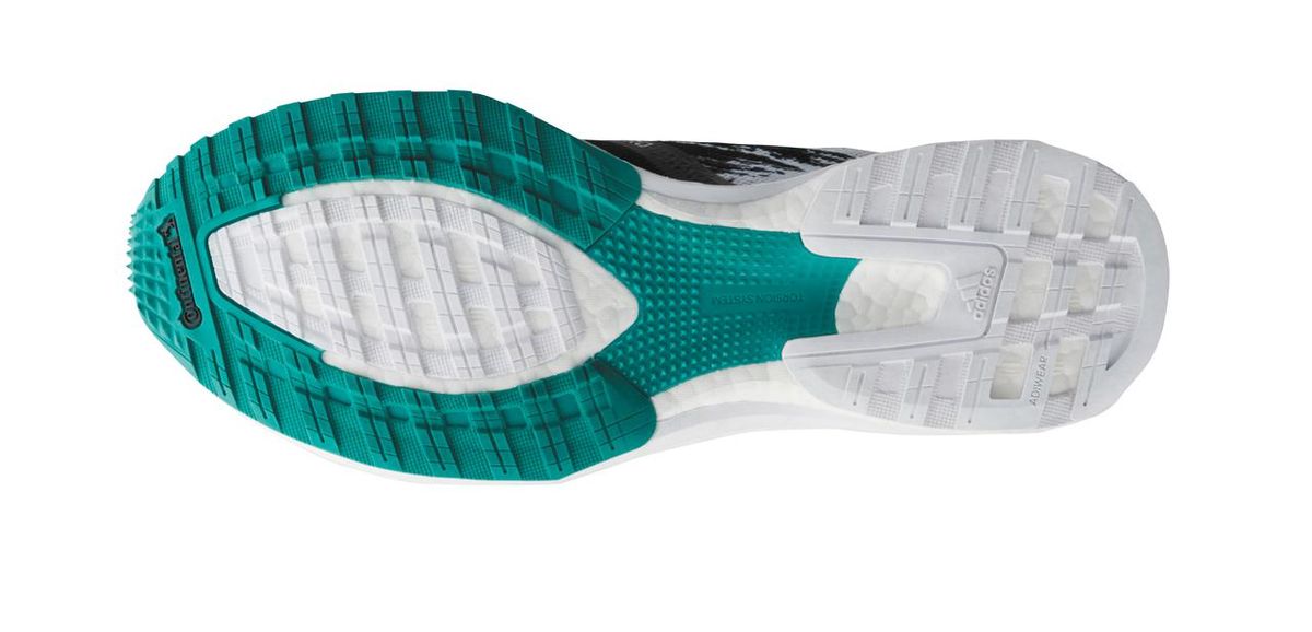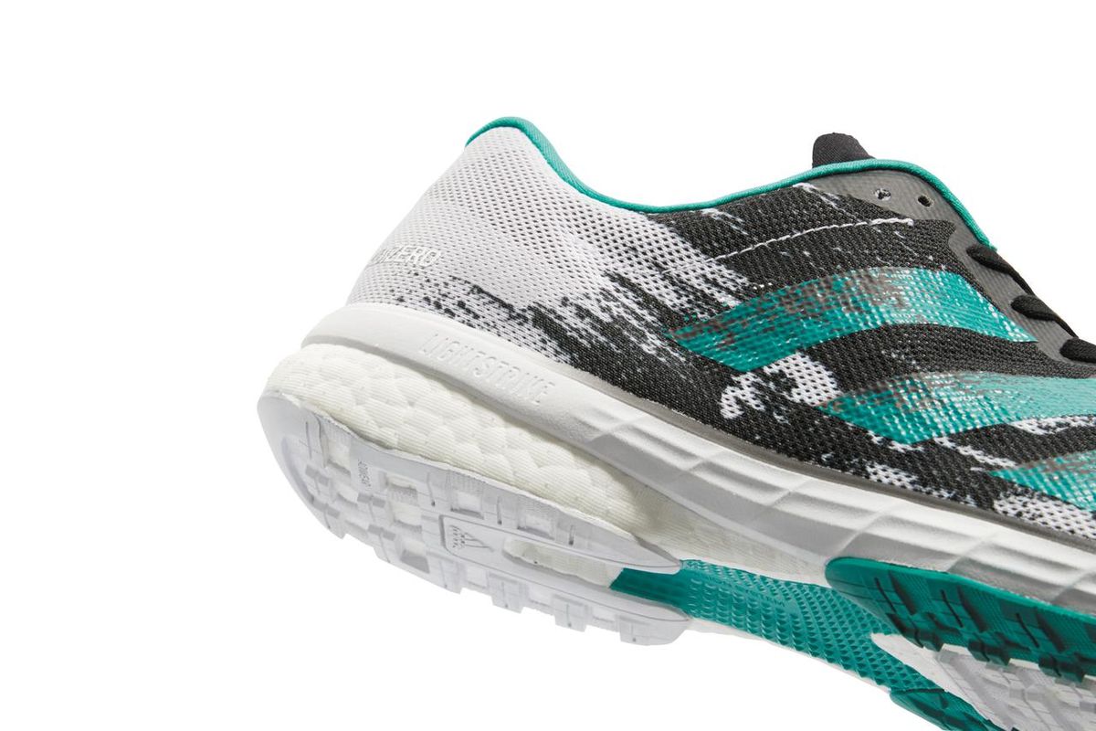 「推進力」を高めるために、さらに貢献しているのが、こちらも新たに開発されたミッドソール素材「ライトストライク」だ。アディゼロの代名詞である「BOOST フォーム」と比べてより軽量、かつ安定性・反発性に優れたこの素材を前足部に採用。かかと部に取り入れたBOOST フォームとの組み合わせによって、適度なクッション性を保ちつつ、高い反発性でスピードを出しやすくしてくれるのだ。このライトストライクは、従来のEVA素材より40%も軽いながら、バスケットシューズにも採用されているほど横への動きに強い。BOOST フォームの数少ない〝弱点〟であった横へのブレを、安定性の高いライトストライクを組み合わせることで補完しているのだ。