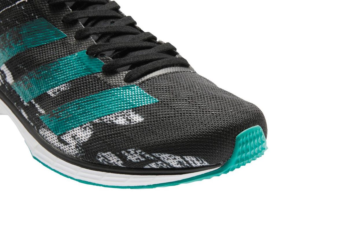 より軽く、という意味では、ライトストライクの採用とともに、アッパーにも工夫を凝らしている。これまでのアディゼロ ジャパンのアッパーは二層構造だったが、新しいジャパンは一層構造。アディダスの使うメッシュ素材としては最も軽い「セラーメッシュ」を採用することで、軽やかさと快適な通気性を提供しつつ、フォアフットでの走りをしっかりとサポート。