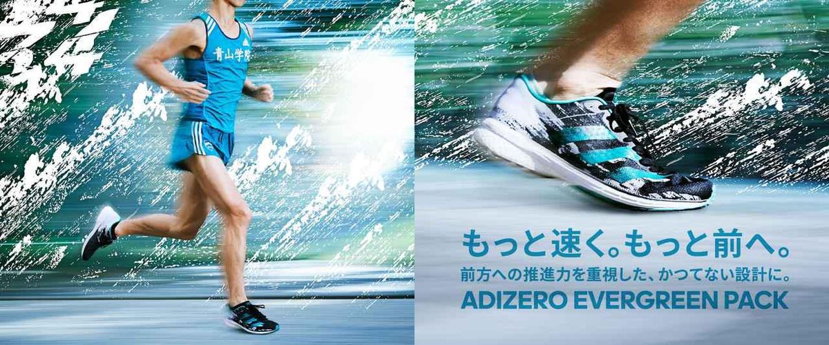 カラーはもちろん、アディダスのパートナーである学生駅伝の雄・青山学院大学のチームカラーからインスパイアされたもの。「エバーグリーン」には、「いつまでも衰えることのない、時を経ても色あせない色」という意味合いがある。シューズ開発へのアディダスの熱意、そして、強豪校としての輝きを放ち続ける青学大の存在感。それらを「エバーグリーン」というフレーズに込めている。スピードを求め続ける、そして、アディゼロを愛し続けるすべてのランナーにも、新しいアディゼロ シリーズは、色あせることのない快適な走りを提供してくれることだろう。