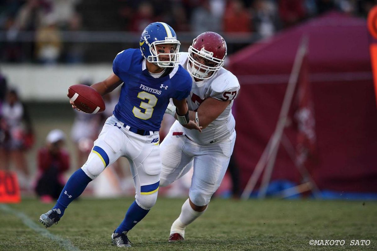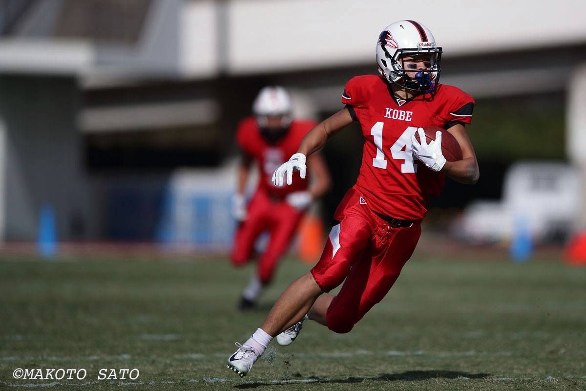 RECEPTION 28回304ヤードの神戸WR14一井 撮影:佐藤 誠