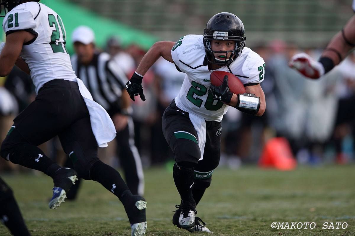 RUSHING 116回646ヤードの京大RB20佐藤 撮影:佐藤 誠