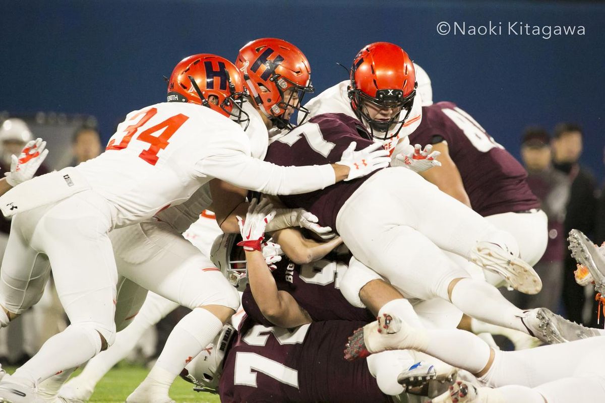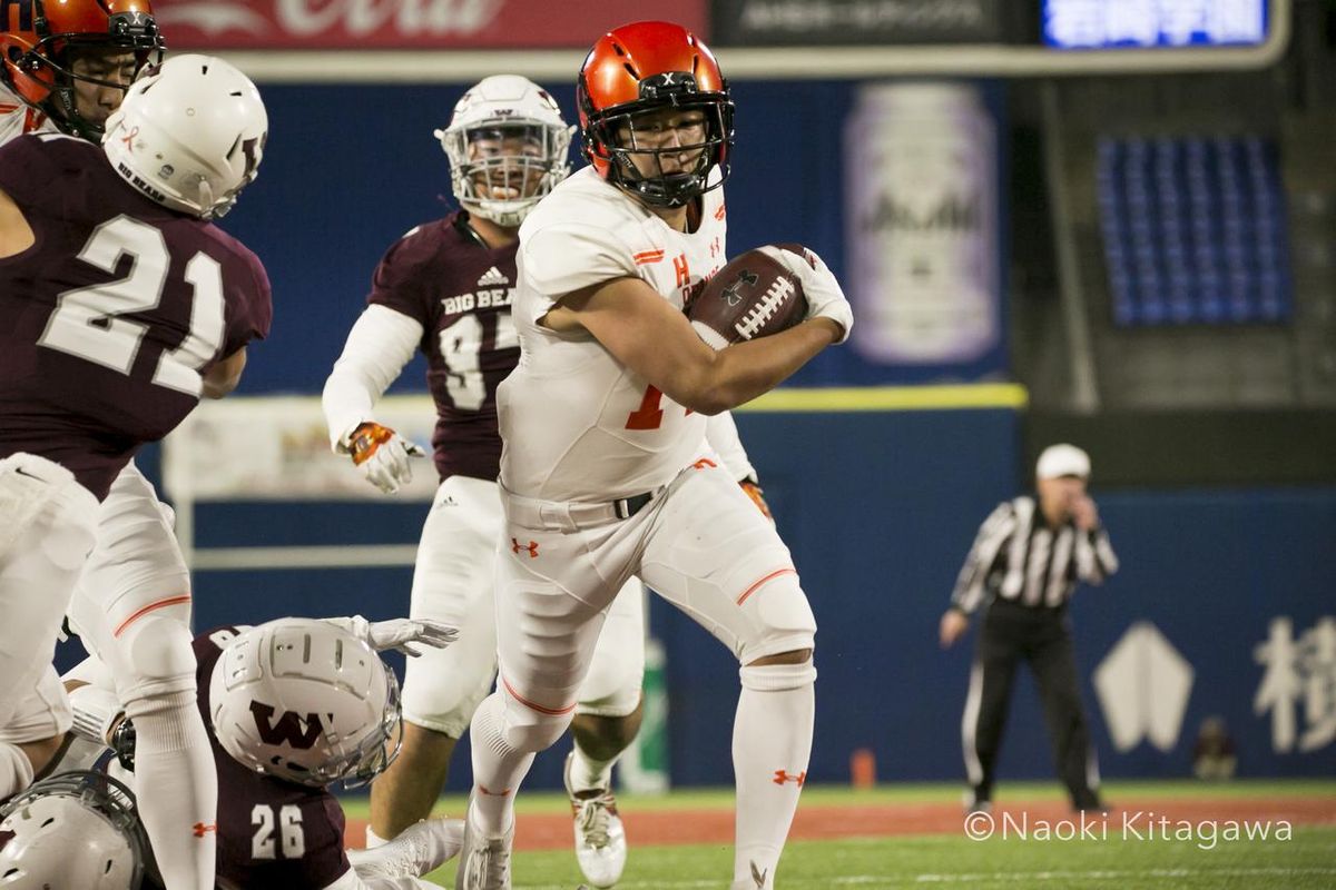 今季の関東学生アメリカンフットボール1部TOP8は、早稲田大学の2年ぶり5回目の優勝で幕を閉じた。最終節の11月25日、法政大学との決戦の中で、早稲田のRB元山伊織、法政のWR高津佐隼矢という2人の4年生を追った。