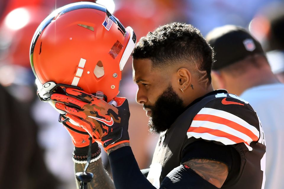 ブラウンズから放出され、FAとなったWRオデル・ベッカム・ジュニア。もう、このヘルメットをかぶることはない=photo by Getty Images