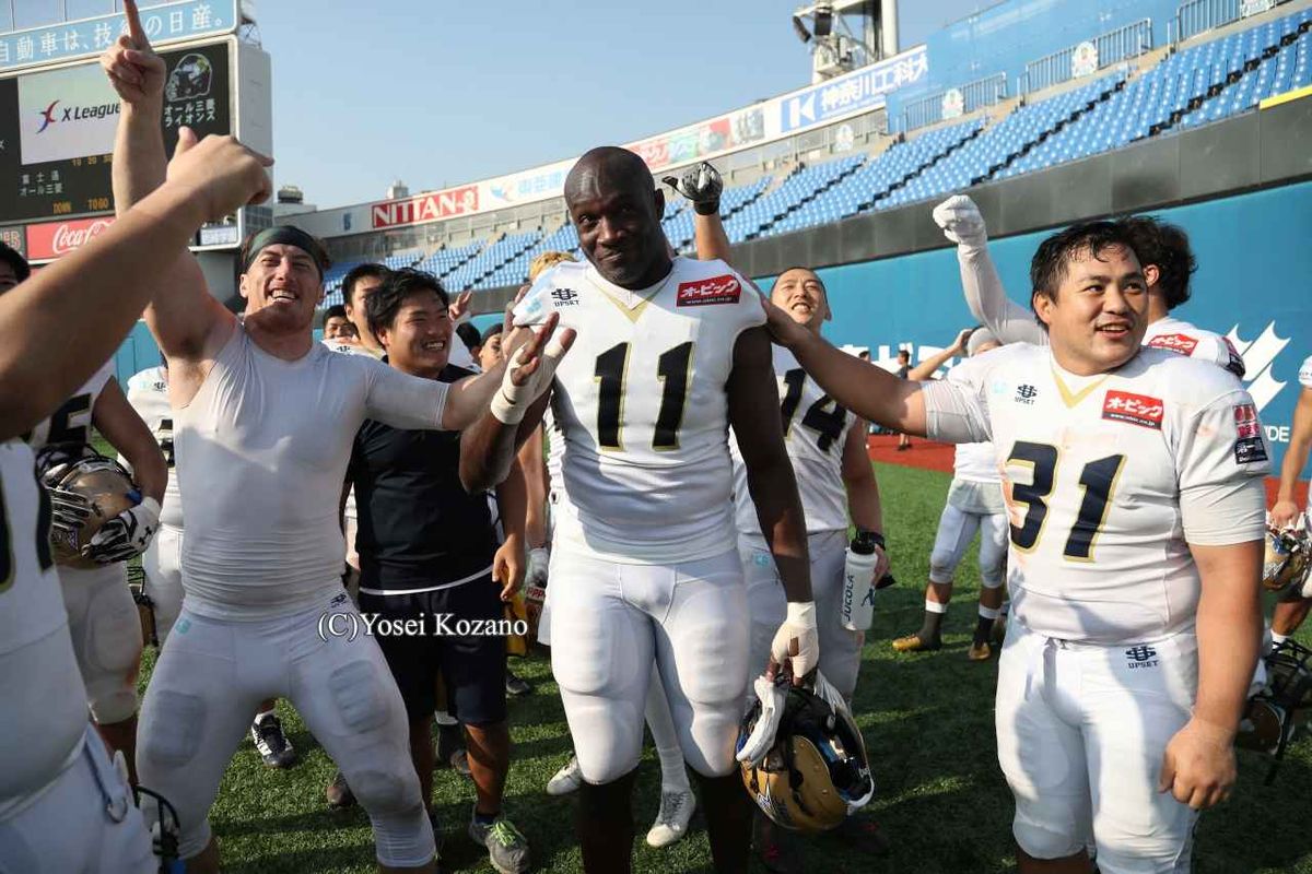 試合後、この日が誕生日だったケビン・ジャクソンを、DLユニットを中心に皆で「ハッピー・バースデー・ツー・ユー」を歌って祝った。KJはQBサックこそなかったが、鋭いプレッシャーをかけて3タックル。37歳とは思えない動きでユニットをけん引した。古庄HCも「年齢を重ねると、確かに回復力は落ちたりはするが、ああやってやり続けている限り、パフォーマンスは上がっていく」と信頼を置く大黒柱だ。