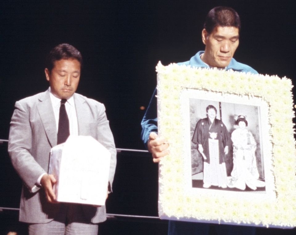追悼式では馬場が菊の花で飾られた遺影を持って、全日本プロレスの全選手が黙とう。追悼の10カウントが場内に響いた。