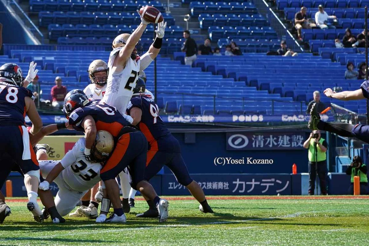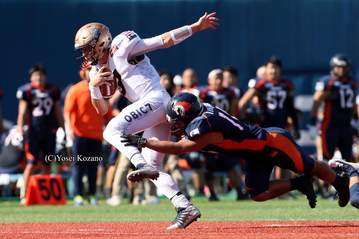社会人アメリカンフットボール・Xリーグは11月10日、横浜スタジアムでジャパンXボウル(JXB)トーナメントの準々決勝2試合を行った。第1試合のノジマ相模原ライズ(レギュラーシーズン4勝2敗・4位)対オービックシーガルズ(同4勝2敗・5位)は、オービックが、42-25でノジマ相模原を破った。