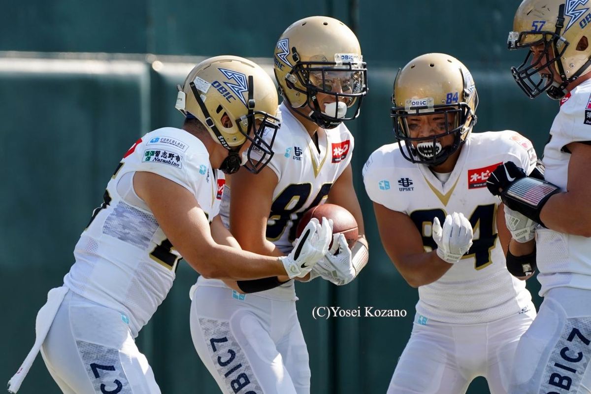 オール三菱戦では、西村有斗が96ヤードのキックオフリターンタッチダウン、水野太郎がパス2回で53ヤードと、同期入団のWRが活躍した。「僕ら3人で切磋琢磨しているが、ノリさん(木下典明)とか、まだ不動のレギュラーの人たちが出ている。僕らはそこを突き破らなければいけない」。