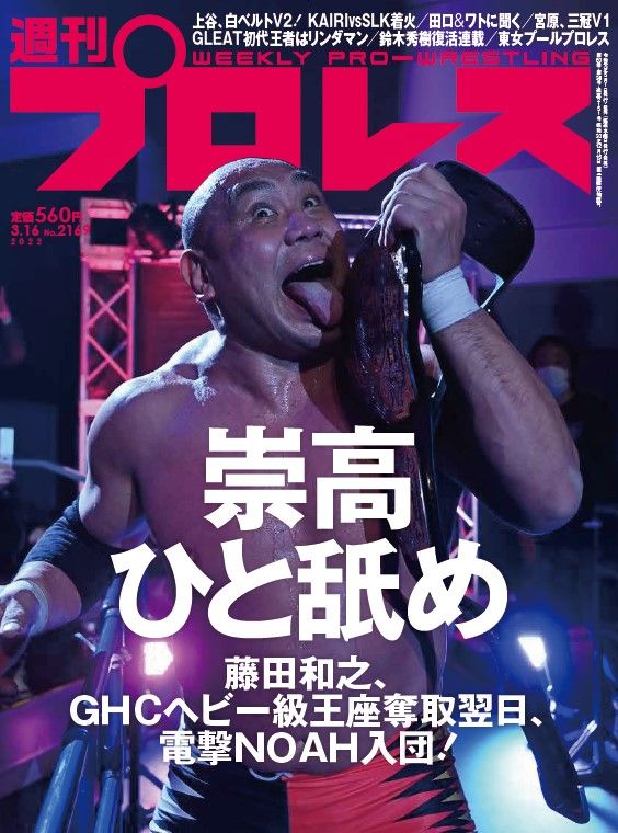 今週号の掲載内容は…藤田和之、GHCヘビー級王座奪取翌日、電撃NOAH入団!/上谷沙弥、白ベルトV2!/KAIRIvsスターライト・キッド着火/田口隆祐&マスター・ワトに聞く/宮原健斗、三冠V1/GLEAT初代王者はエル・リンダマン/鈴木秀樹復活連載/東京女子プールプロレス、ほか。