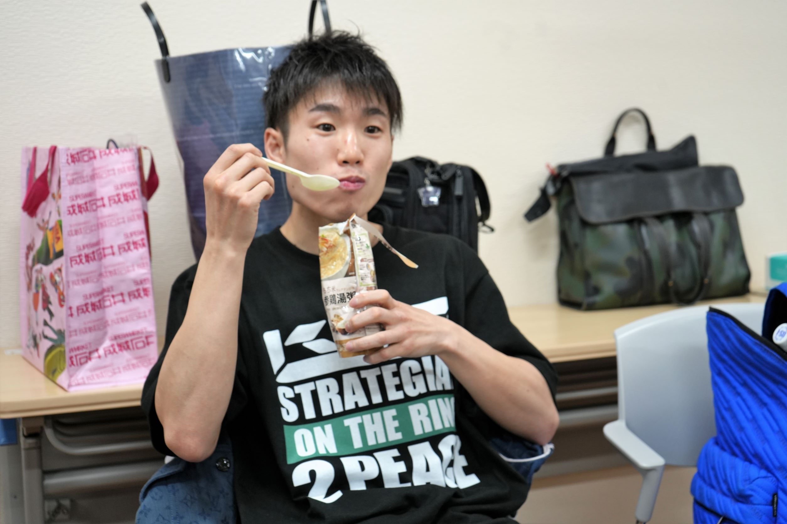 寺地はドリンク、レトルトの袋入りサムゲタンをかみしめるように口に入れた。