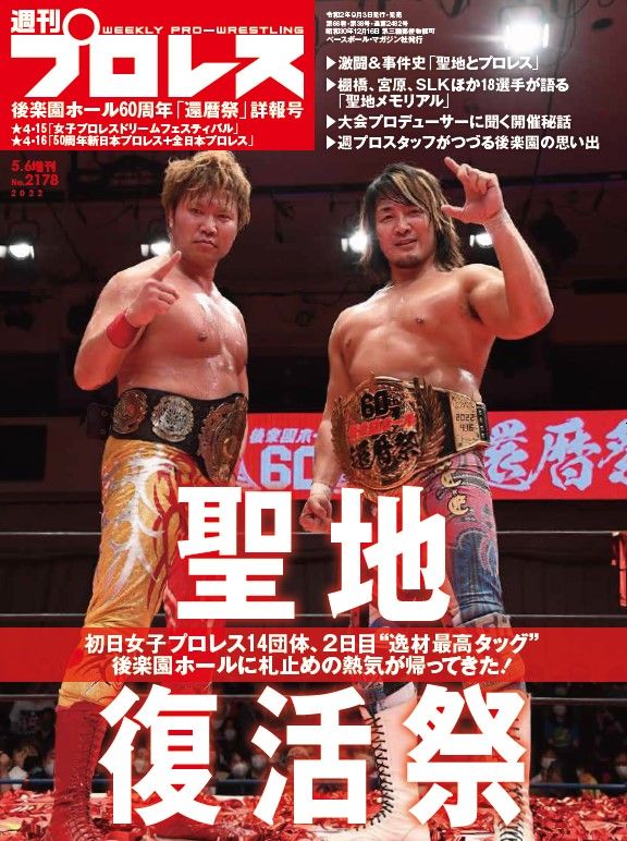 「週刊プロレスmobileプレミアム」にて本日(4月20日)発売の本誌最新号(2022年5月4日号/No.2177)および「後楽園ホール60周年 還暦祭詳報号」(週刊プロレス5月6日号増刊/No.2178)が配信されました。