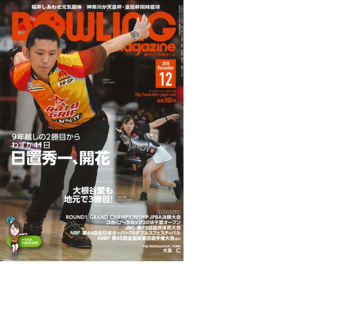 今月の表紙はROUND1GRAND CHAMPIONSHIP BOWLING 2018 JPBA決勝大会で3勝目を挙げた日置秀一プロと大根谷愛プロです。