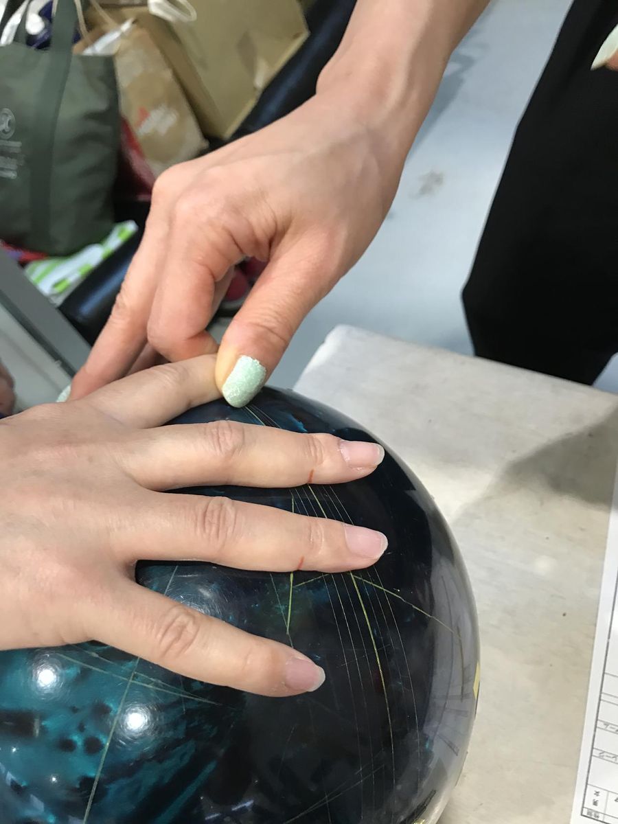 この工程で出来上がったのが、指の長さと大きさのメジャーになります。初めての女性の場合、少しでも痛かったり、引っかかったりすると、その多くがものすごい違和感を覚えるので、スパンを短めにするなど、少し余裕を持たせることがあります。指が痛くてボウリングが嫌になってしまったら、とてももったいないですからね。