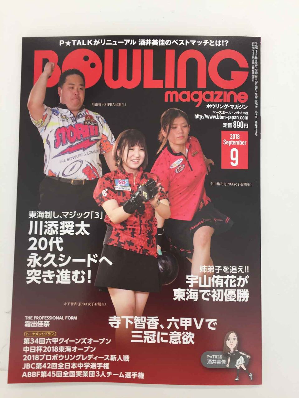 ボウリング・マガジン9月号は、寺下智香プロが劇的な10フレ勝負を制した『第34回六甲クイーンズオープン』、川添奨太プロが17勝目、宇山侑花プロが初優勝を果たした『2018東海オープン』、坂本かやプロが初Vの『2018レディース新人戦』、アマチュアではJBC第42回全日本中学選手権大会、ABBF第45回全国実業団3人チーム選手権など、トーナメントリポートを中心にご紹介しています。