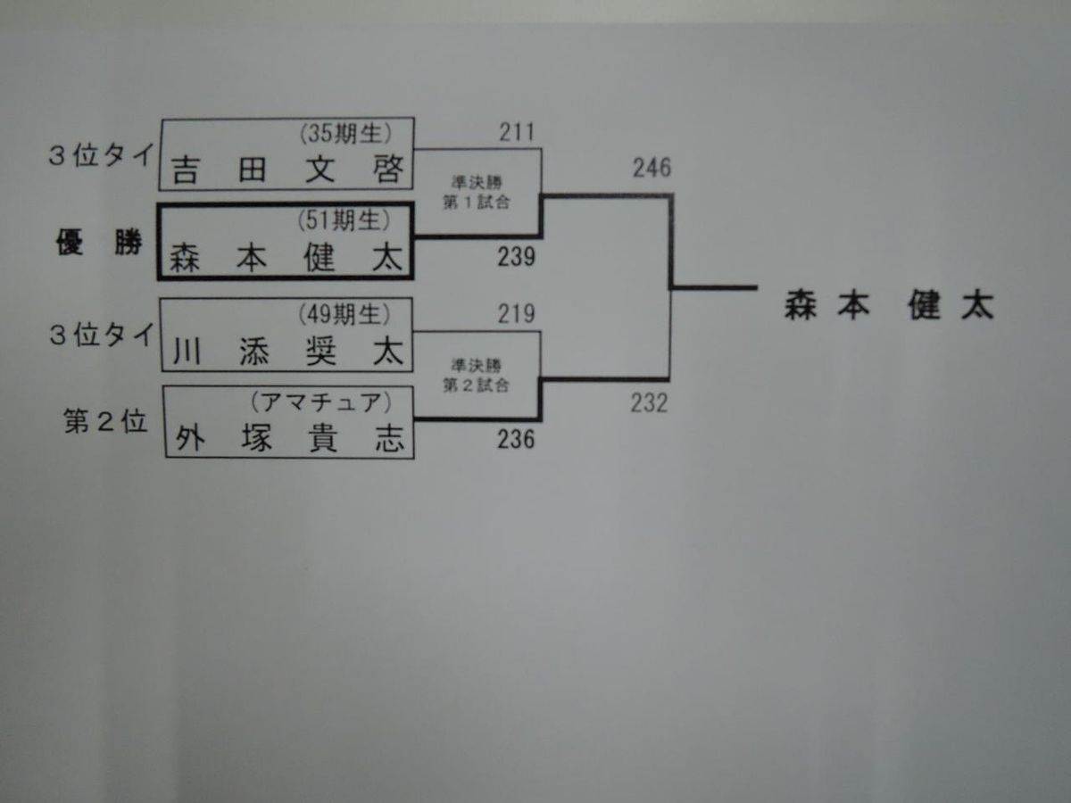 予選6GをAシフト6位で通過した森本は、決勝トーナメント2回戦~3回戦と準々決勝で2Gを先取して、勝ち抜け。4名による1Gマッチの準決勝で吉田文啓(35期・アソビックス/ハイ・スポーツ社)を下すと、優勝決定戦でも3フレから6連発と好調。8フレからのストライクラッシュで追いすがるアマチュアの外塚貴志選手(ラウンドワン栃木・樋ノ口店)を246-232で退けました。