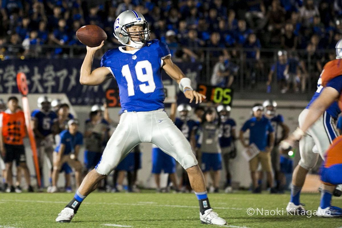 学芸大QB#19高橋空良はパスを多投したが、苦戦を強いられた(撮影:北川直樹)