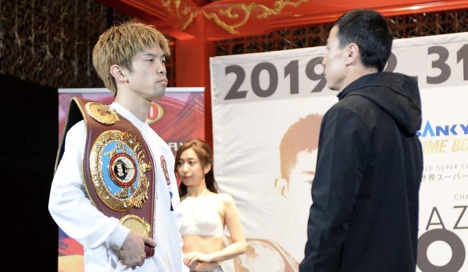 31日、東京・大田区総合体育館で3度目の防衛戦に臨むWBO世界フライ級チャンピオンの田中恒成(24歳=畑中)が25日、羽田空港国際線ターミナルのイベントスペース「江戸舞台」に登場。同日のトリプル世界戦に出場する井岡一翔、吉田実代らと記者会見、調印式、フェイスオフの行事を一般に公開し、近づく大晦日の決戦を盛り上げた。