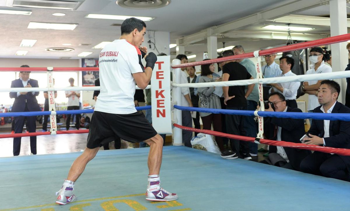 7日(木)、さいたまスーパーアリーナで開催されるWBC世界バンタム級王座統一戦12回戦で、暫定王者・井上拓真(23歳=大橋)と激突する正規王者ノルディーヌ・ウバーリ(33歳=フランス)が1日、都内の帝拳ジムで公開練習。ほんの肩慣らし程度の短い練習だったが、バランスの良さ、体幹の強さをアピールした。