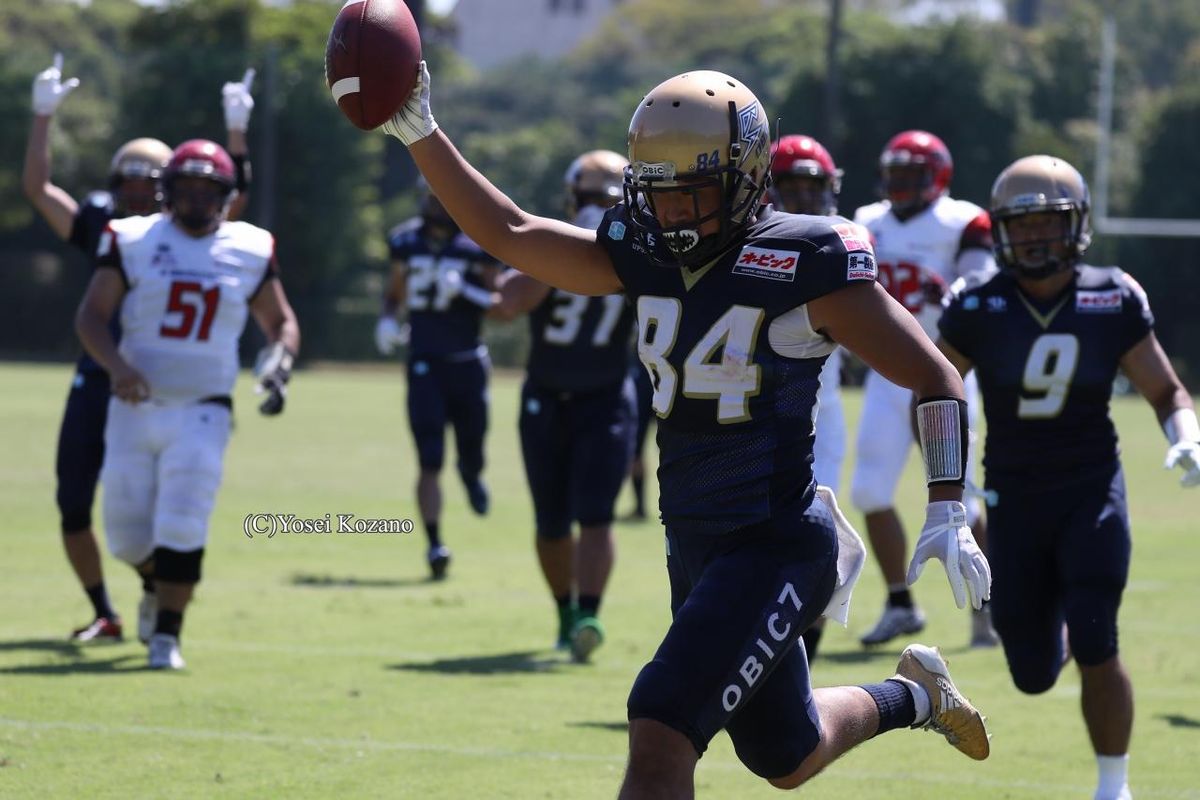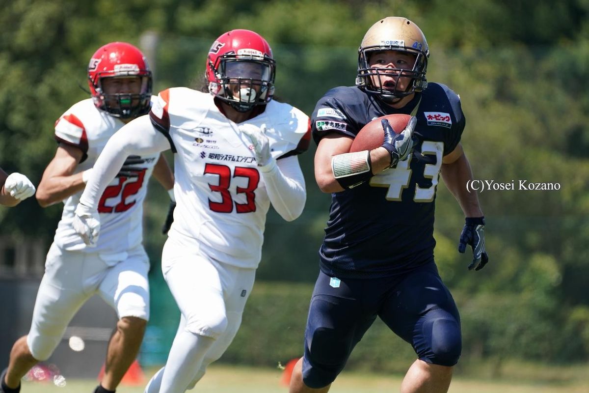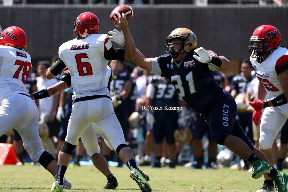 社会人アメリカンフットボールのXリーグは8月26日、第1節の5試合が東西の会場で行われた。千葉県習志野市の第1カッターフィールドではオービックシーガルズ対BULLSフットボールクラブの1戦があり、5年ぶりの王座奪還を目指すオービックが90-3でBULLSに大勝した。