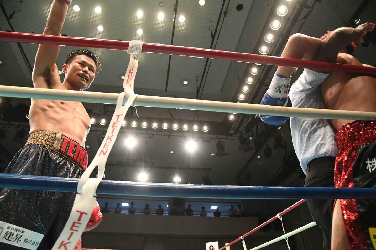 「右フックをボディに打って、左アッパーを返したあと、『あ、相手の体の力が弱まったな』と思って。あとは思い切り出ていきました」(永野)