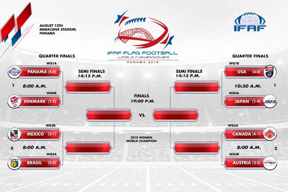 第9回フラッグフットボール世界選手権 女子決勝トーナメントの組み合わせ
