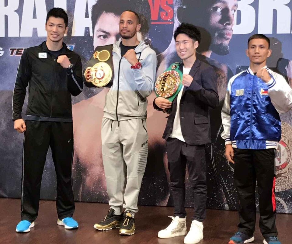 12日に大阪・エディオンアリーナ大阪第1競技場で行われるWBA世界ミドル級、WBC世界ライトフライ級のダブルタイトルマッチの記者会見が10日、大阪市内のホテル日航で行われ、出場する4選手とも強い決意を表明した。