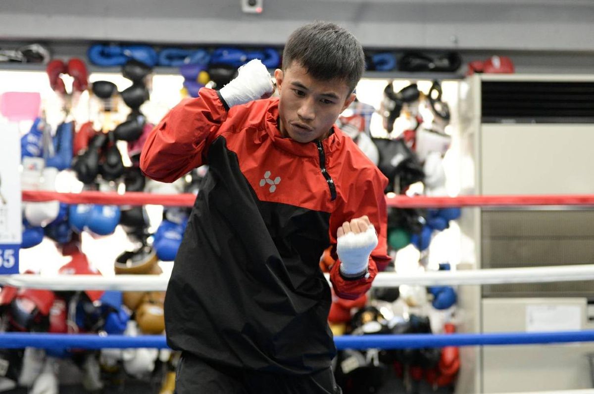 おとなそうだった童顔が豹変した。タイ選手特有のインターバルなしのロープ跳びでウォーミングアップを終え、シャドーボクシングに入ってからのことだ。続くミット打ちでは元世界王者チャッチャイ・サーサクン・トレーナーのミット目がけて、奇声を発しながら力のこもったパンチを休みなく繰り出す。たっぷり汗を流した後もサウナスーツを着込んだまま、時間をかけて腹筋をストレッチ。細身の体には十分なスタミナを蓄えている様子だ。