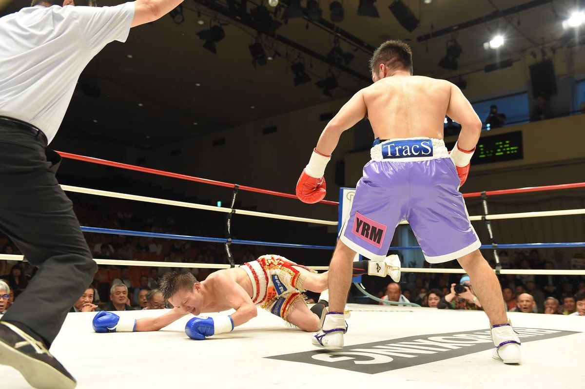 痛烈なダウンだったが、春口はこの後立ち上がって、最後の最後まで粘った