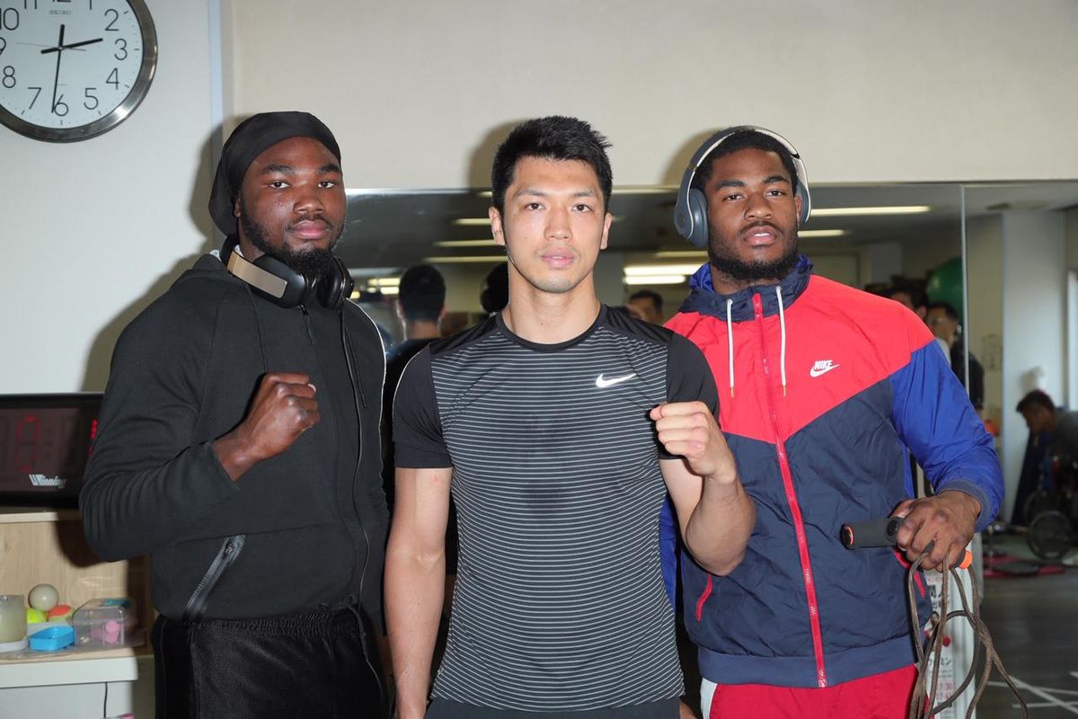 アメリカから呼んだスパーリングパートナーのスティーン(左)とハリス(右)