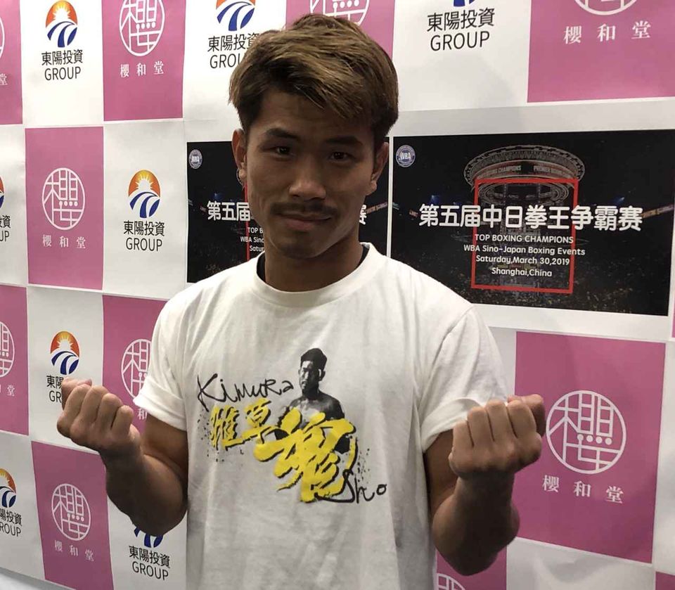 写真上=「これが新たなKOパンチ」と意味ありげなファイティングポーズを見せた木村
