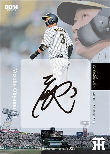 通常版直筆サインカードと同じく甲子園球場が背景にデザインされていますが、シルバーの材質ですと細かいところまでくっきりと見えるのが良いですね。大山選手がレフト方向へ本塁打を放った場面なのでしょう。確信歩きの後ろ姿が最高ですね!