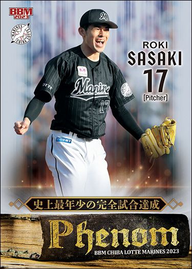 「Catch the Wave」「Chapter One」「TREASURE」「ESPERANZA」「ANTIQUE」など豊富なインサートカードの中でも特に注目なのは、佐々木投手のキャリアを振り返る「Phenom」です。入団会見から初勝利、完全試合達成など全6種類で構成されており、いずれのカードにもパラレル版として200枚限定の⾦紙版、100枚限定の銀紙ホロPP版、 50枚限定の⾦紙ホロPP版が存在します。ファンならずとも、きっと6種類揃えて飾りたくなるようなカードだと思います。