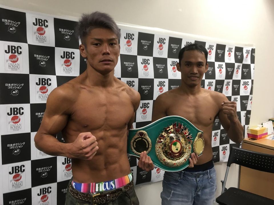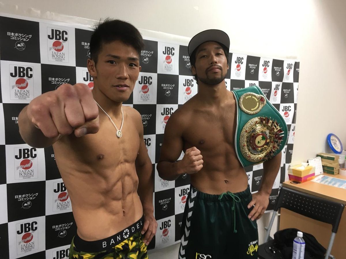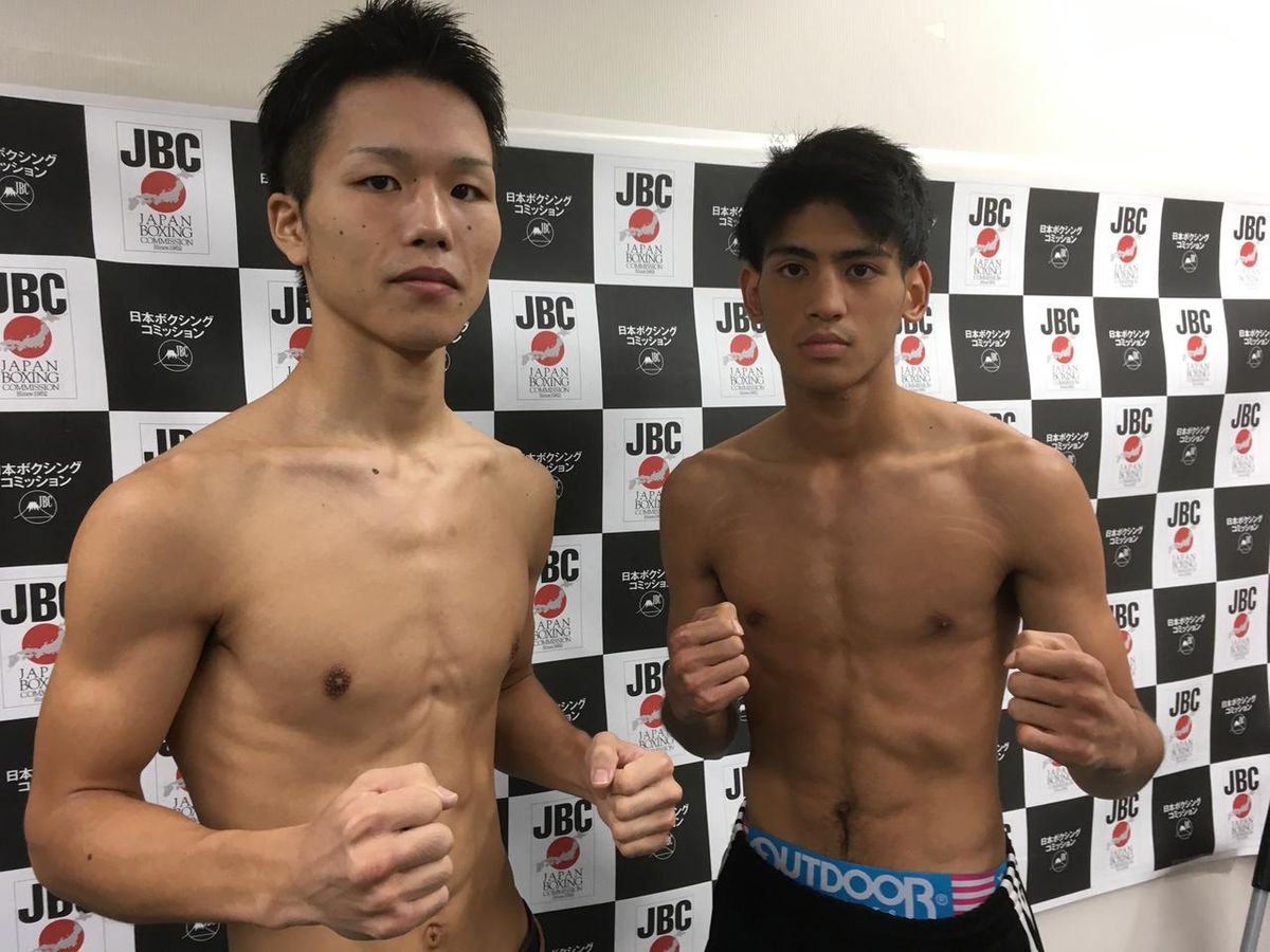 あす11日、後楽園ホールでグレン・サミンギット(フィリピン)との東洋太平洋Sバンタム級王座決定戦に臨む勅使河原弘晶(輪島功一S=左)は、1階級上げたメリットを強調。「自分で自分の動きが楽しみ。明日はヤバい勅使河原が見せられると思うし、絶対に倒して勝ちます」。