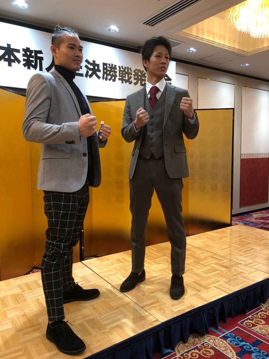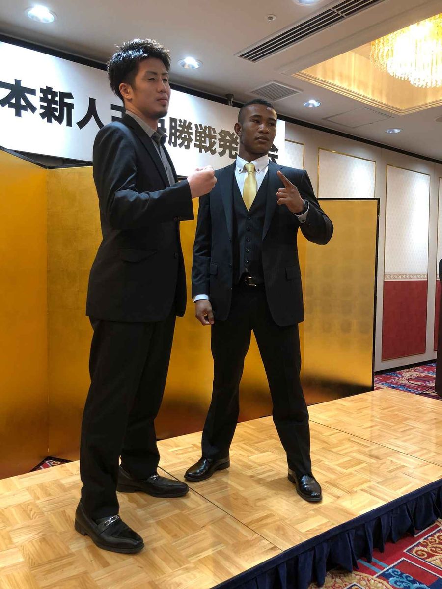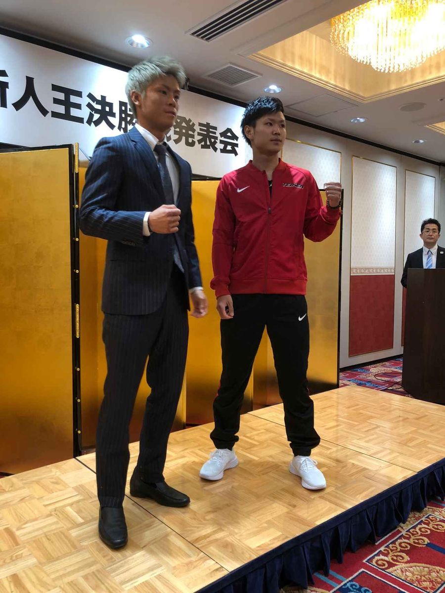 11月4日、東京・後楽園ホールで開催の第75回東日本新人王決勝戦に出場する12階級24選手が後楽園飯店に集結。全員が新人王にかける意気込みを語った。(取材=本誌・藤木邦昭)